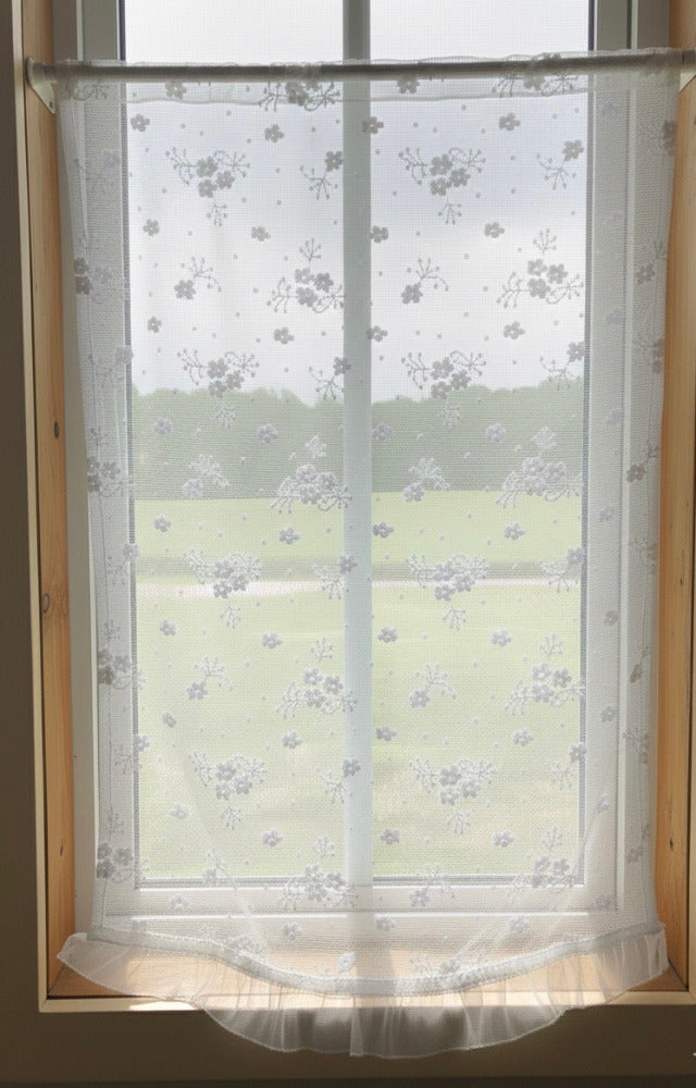 Tendina in tulle bianco della collezione Anemone di Atelier 17, un tocco di eleganza delicata per le tue finestre. Ricamate con piccoli anemoni che decorano l'intera superficie, queste tende da 45x140 cm catturano la luce naturale creando un'atmosfera raffinata e romantica. Il caratteristico orlo con frill finale aggiunge movimento e grazia, trasformando ogni ambiente in uno spazio accogliente e sofisticato.